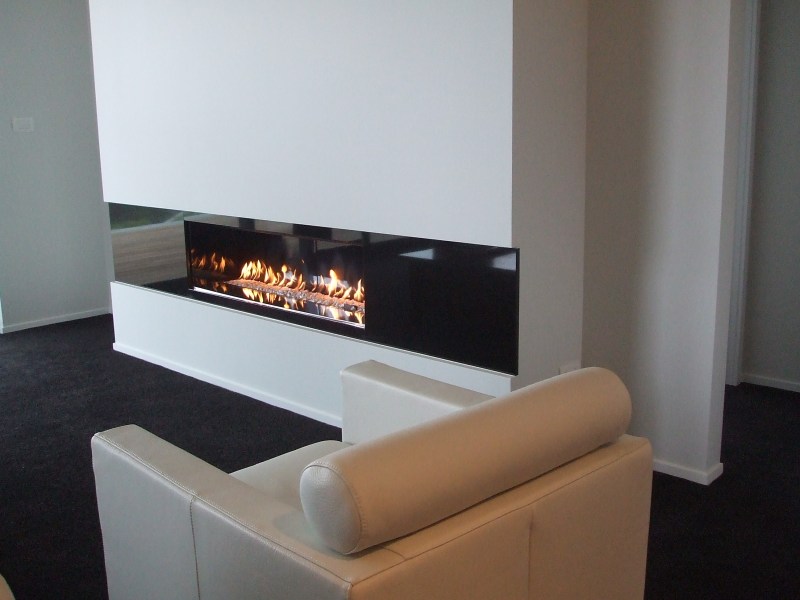 The Kitchen and Bathroom joinery units are designed by the architects to bring the soaring, cantilevered aesthetic into the interior. The Kitchen is predominantly reflective black lacquer finish with white stone island bench top and custom designed base of reflective black lacquered battens that appear to be like water.