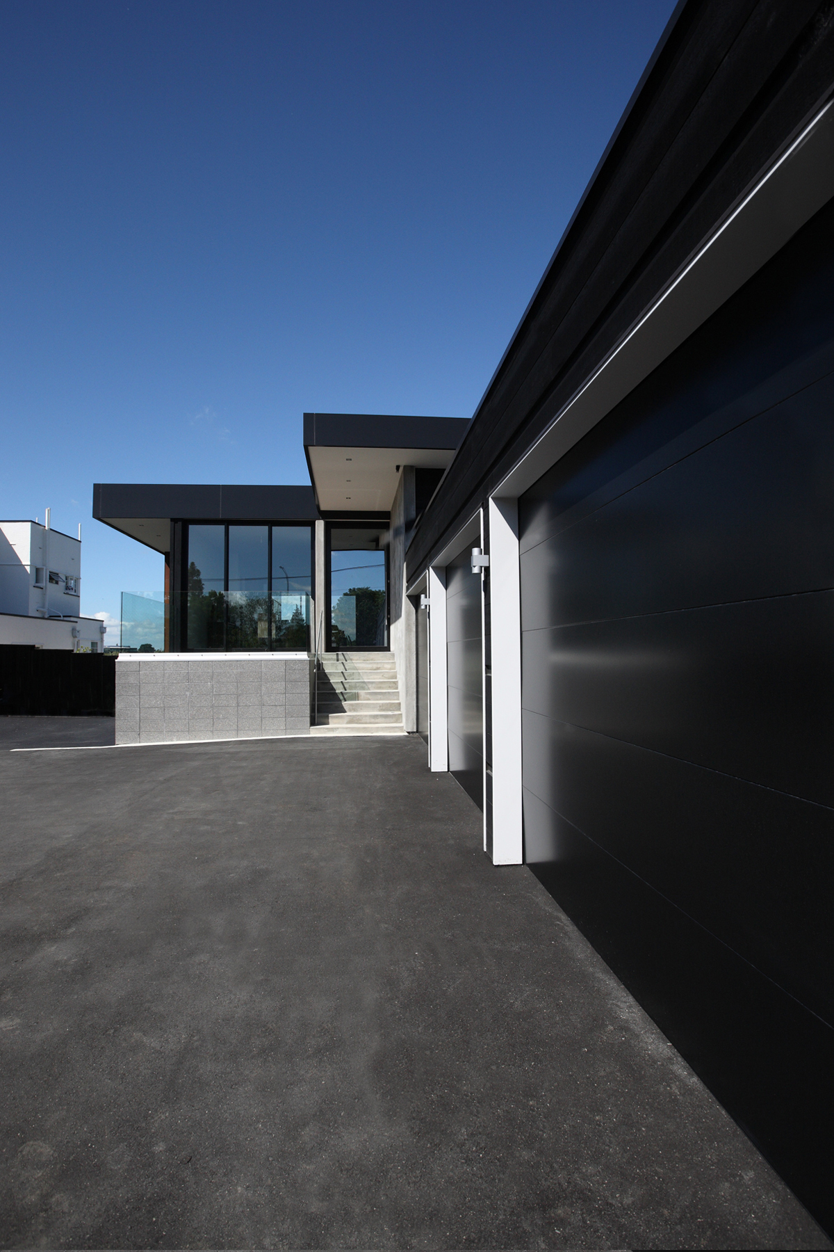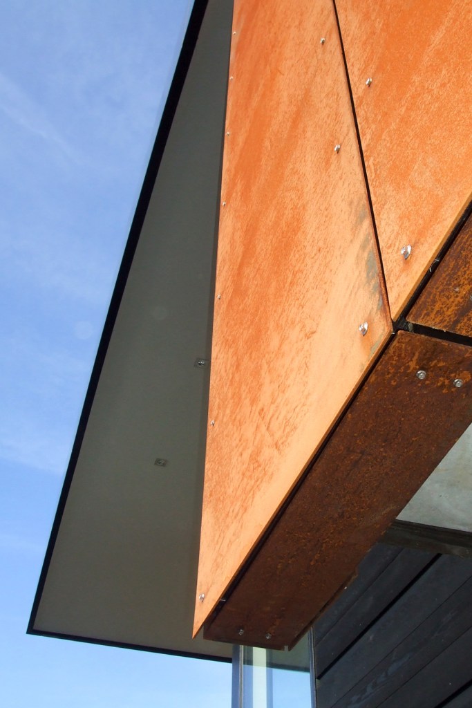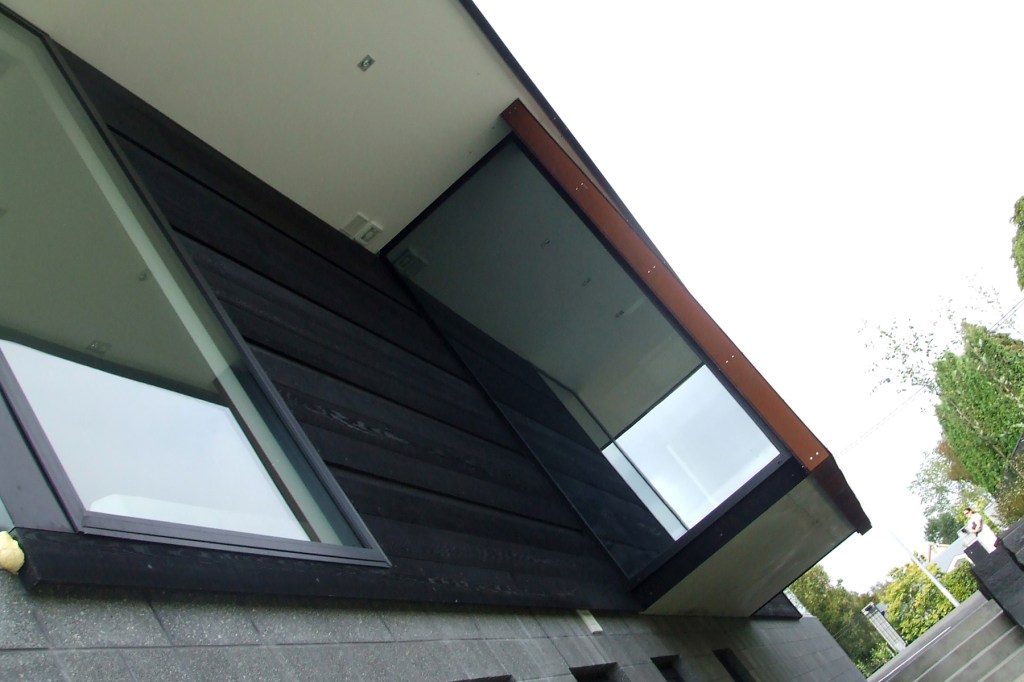 Cantilevered planes and custom designed black cedar cladding reminiscent of the striated river banks gives this house a sophisticated flying aesthetic that fits into its city fringe location and elevated river bank environment.
