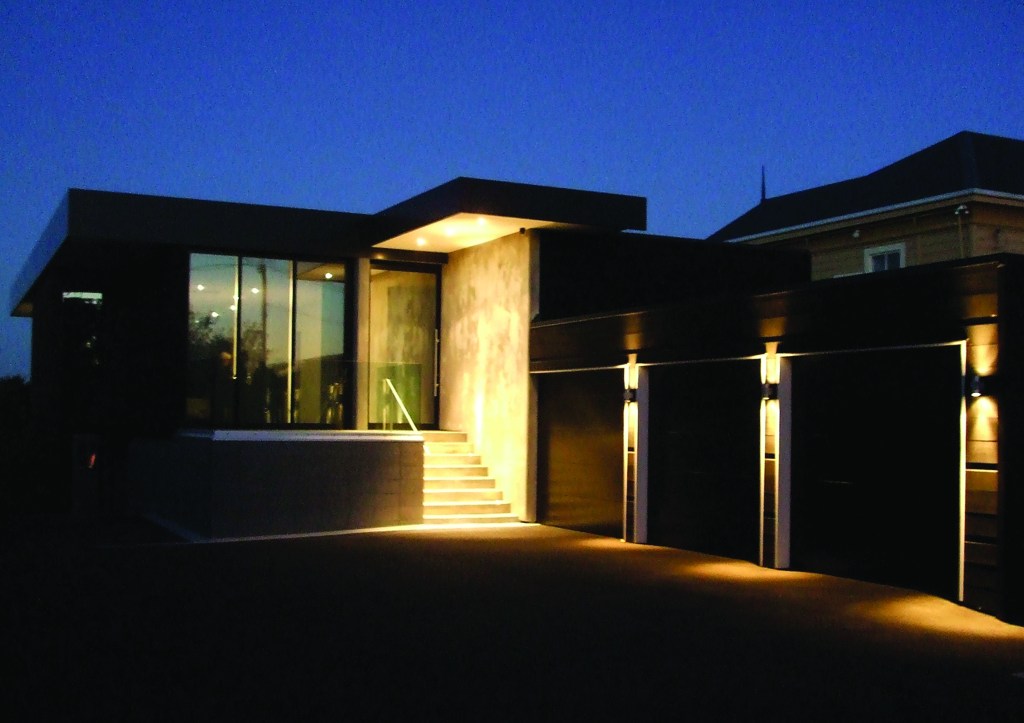 The Entry is defined by precast concrete blade walls that act as thermal heat sinks, staggered to create a dynamic effect. The concrete blades are connected by a mirror glass pivot entry door, reflective like water. Double glazing and additional insulation have been included for thermal comfort. As one enters the house, the expansive River views are framed by the walls and the continuous high ceilings that are the same height as the exterior soffit.
